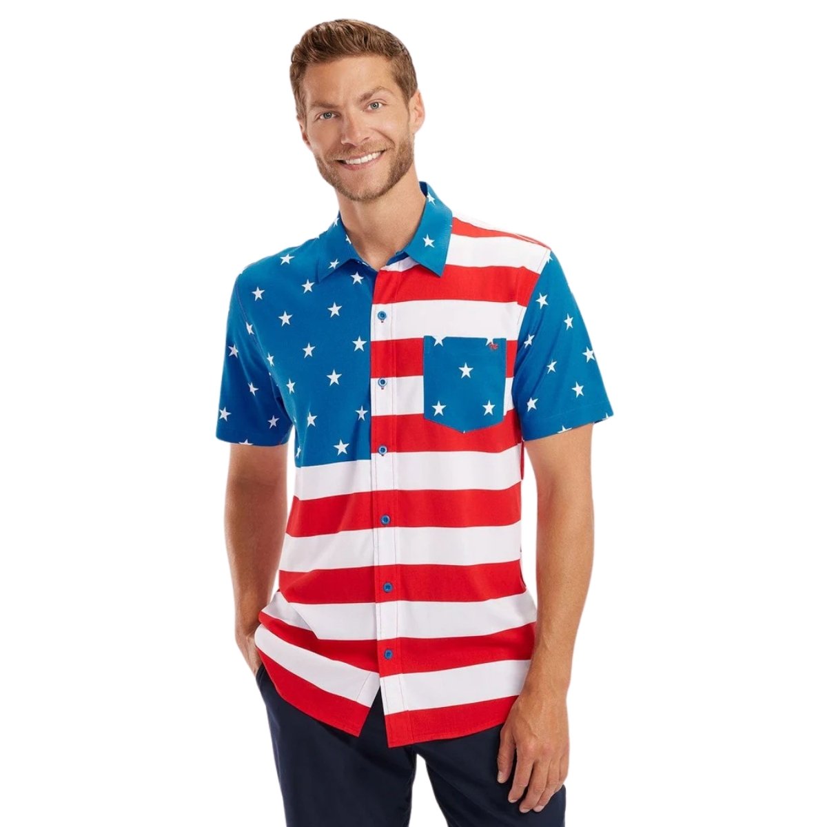 Show off your patriotic spirit with this American Flag Hawaiian Shirt. Perfect for any occasion, this shirt is a unique twist on a classic design. Stand out from the crowd and make a statement with this bold and stylish shirt.