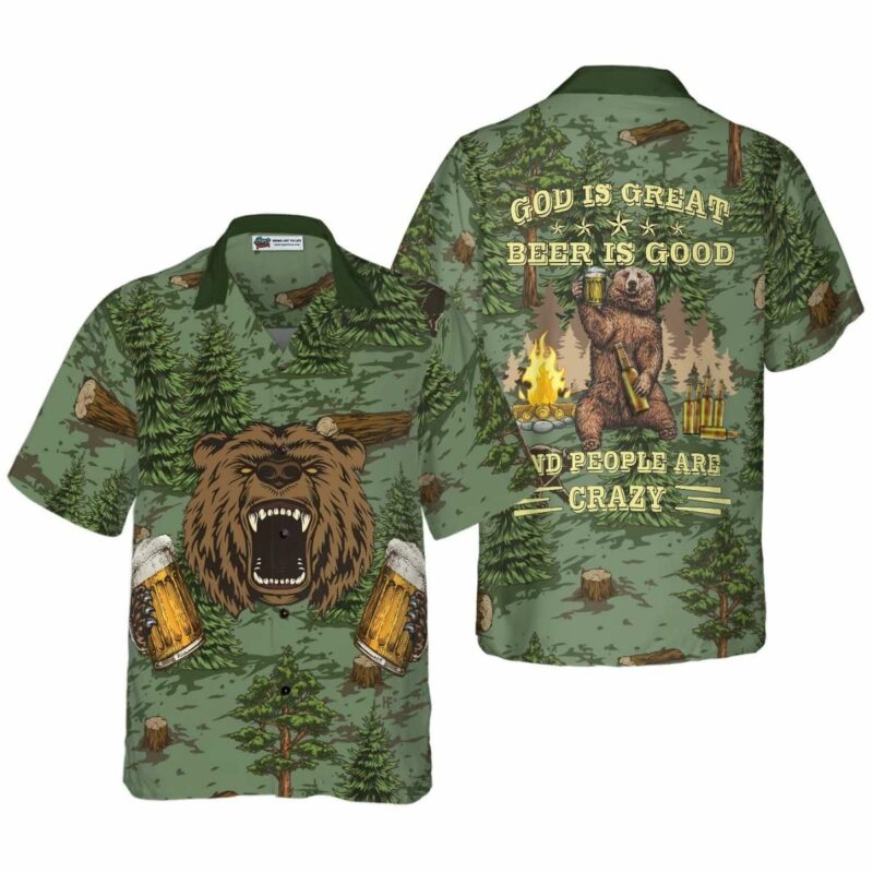 Get ready to stand out at your next camping trip with this unique Angry Bear Drink Beer Hawaiian Shirt. Perfect for those who love the great outdoors and a cold brew.
