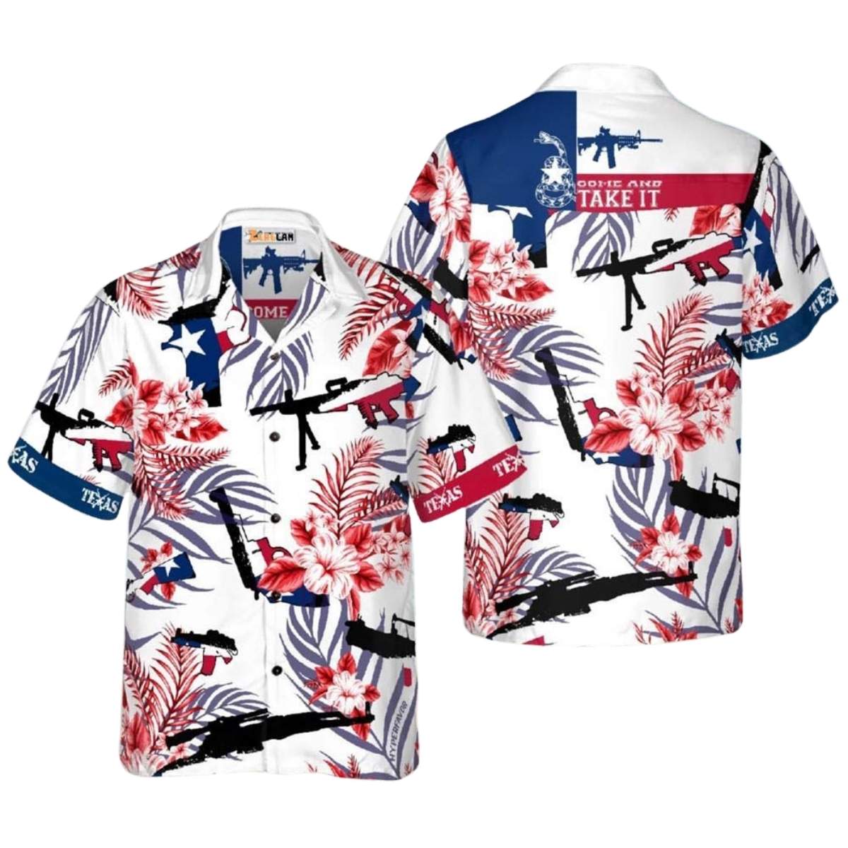 Celebrate Independence Day in style with this Come And Take It Texas Gun Hawaiian Shirt. Perfect for Fourth of July festivities, this shirt is a unique way to show off your patriotic spirit. Stand out from the crowd with this eye-catching design!