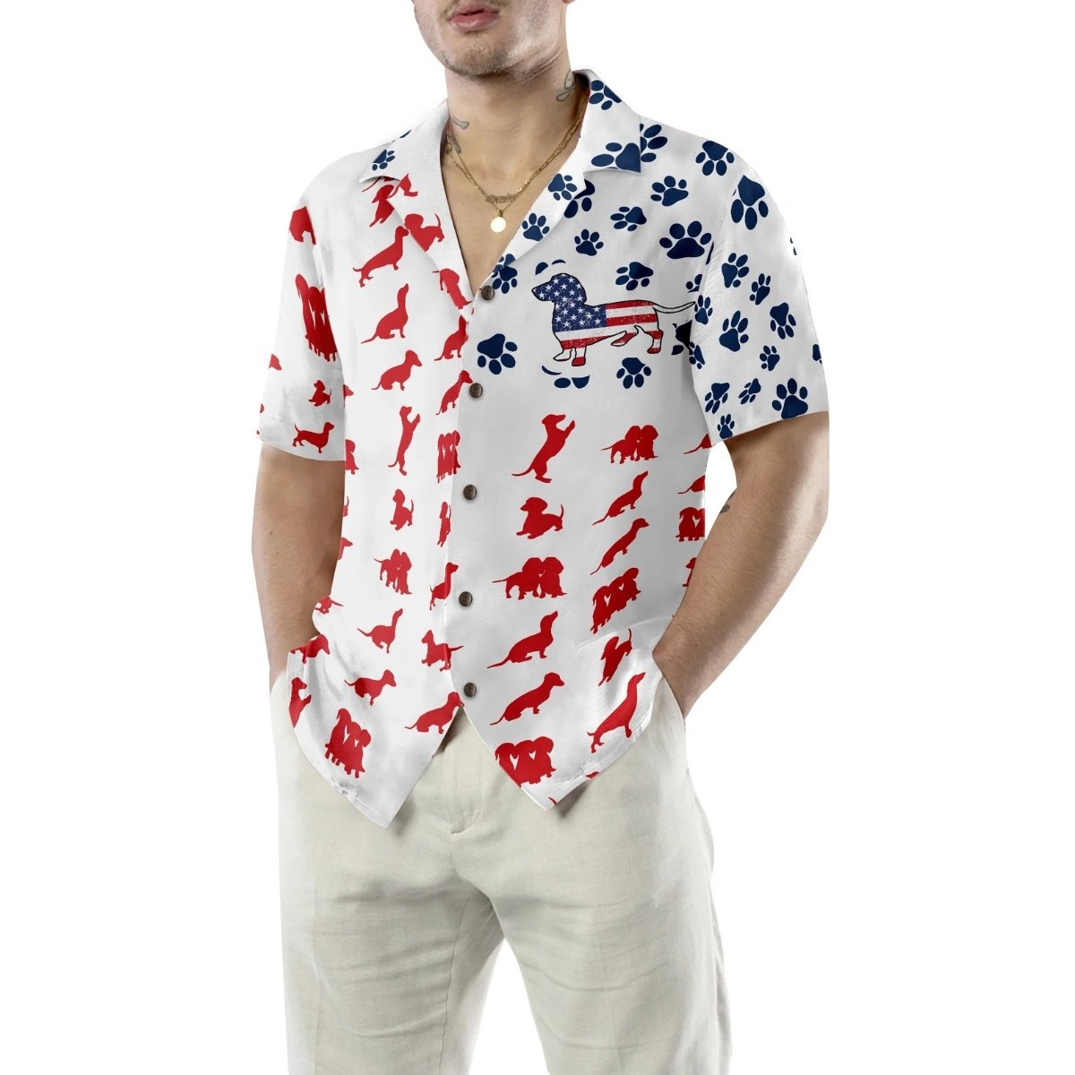 Show off your patriotic side with this unique Dachshund American Flag Hawaiian Shirt. Perfect for any summer occasion, this shirt is sure to turn heads and make a statement. Get yours today and stand out from the crowd!