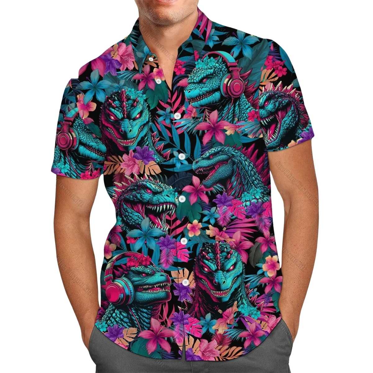 Godzilla Red Palm Leaves Hawaiian Shirt