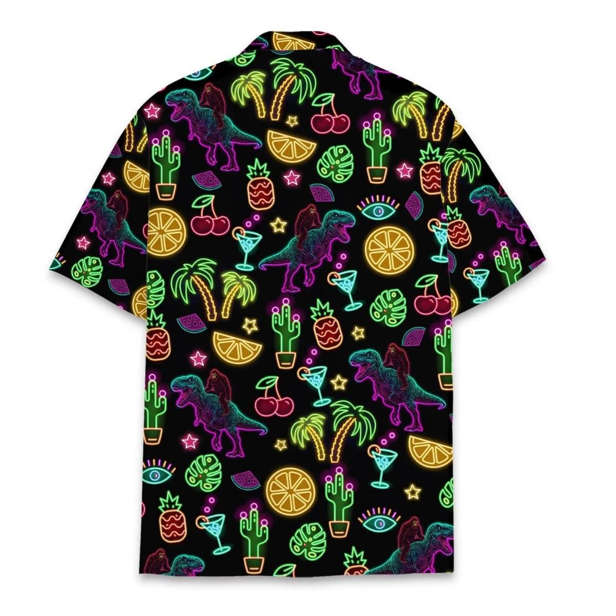 Make a bold statement with our Neon Dinosaur Tropical Hawaiian Shirt. Stand out from the crowd with this vibrant and unique design. Perfect for adding a pop of color to your wardrobe.