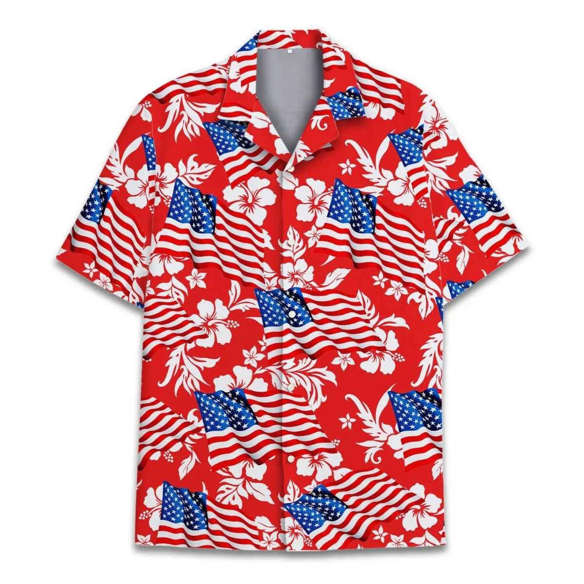Patriotic 4th of July Red Pattern Hawaiian Shirt