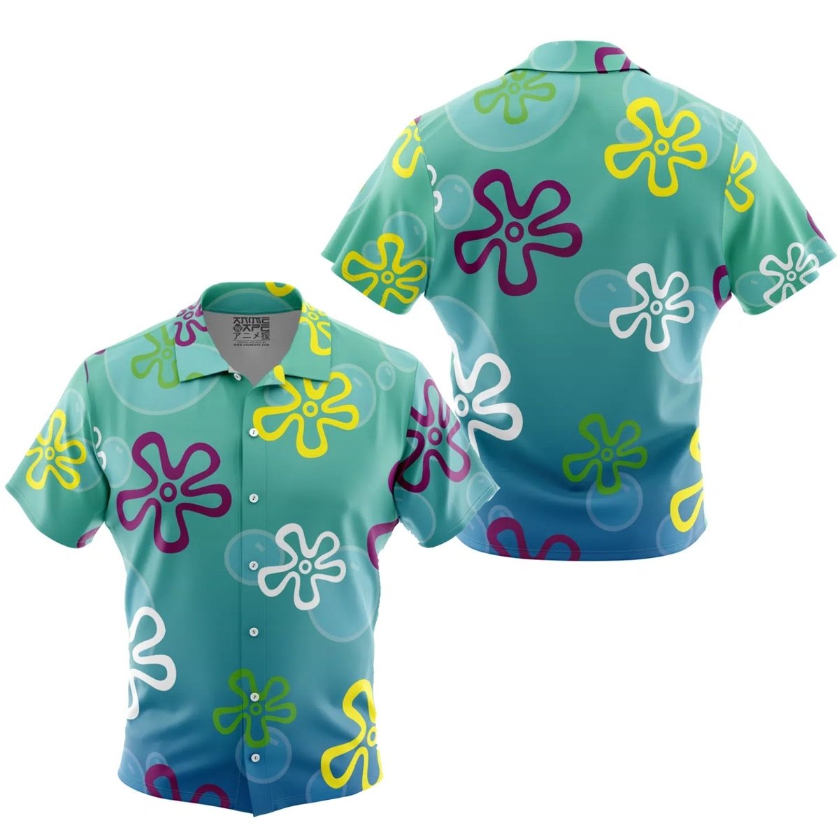 Add a touch of fun to your wardrobe with this SpongeBob SquarePants Logo Pattern Hawaiian Shirt. Perfect for casual outings or beach days. Stand out with this playful and vibrant shirt!