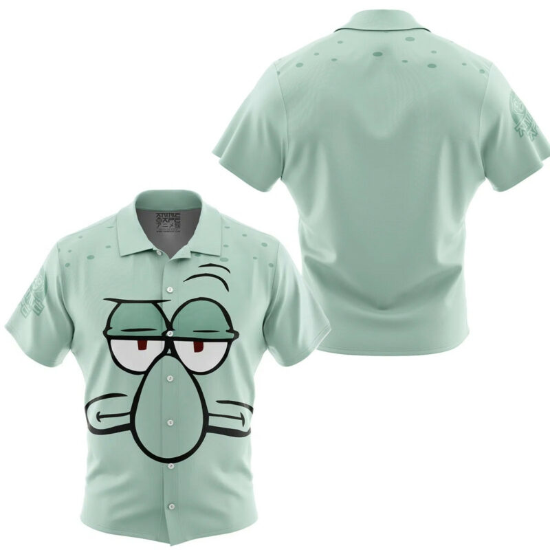 Get ready to show off your love for Spongebob Squarepants with this Squidward Face Cosplay Hawaiian Shirt. Perfect for adding a touch of fun to your wardrobe.