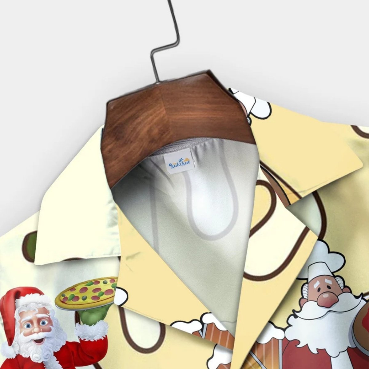 Get into the festive spirit with this unique Yellow Santa Claus Hawaiian shirt featuring pizza and beer motifs. Perfect for adding a fun twist to your Christmas wardrobe!